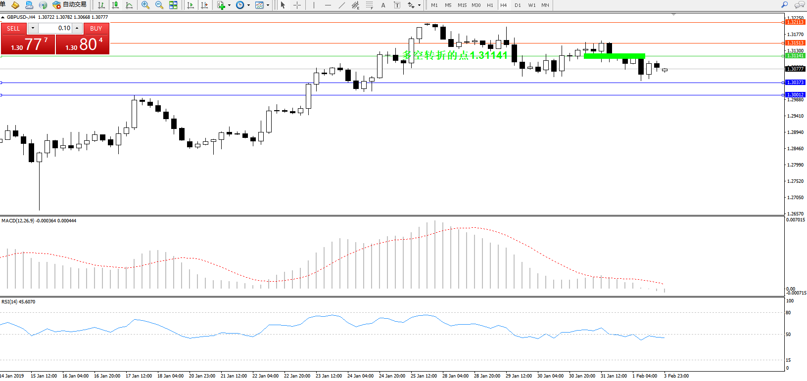 交易策略:1.31141下方看跌,目标1.30373、1.30012