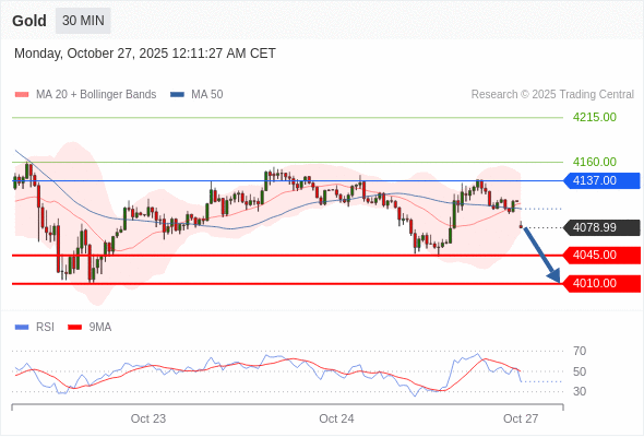 在 4137.00 之下,看跌,目标价位为 4045.00 ,然后为 4010.00 。