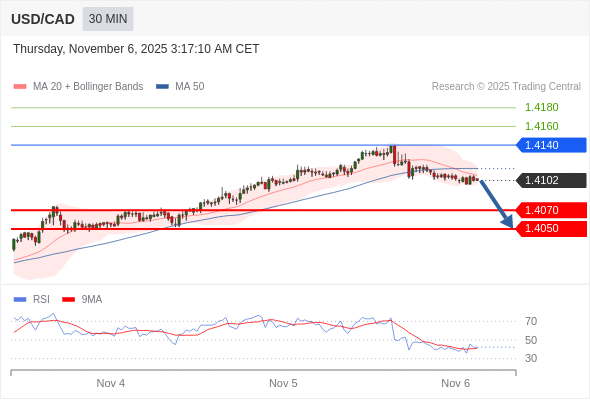在 1.4140 之下,看跌,目标价位为 1.4070 ,然后为 1.4050 。