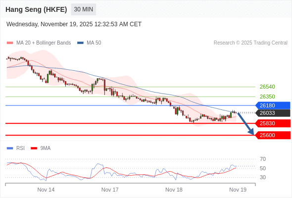 在 26180 之下,看跌,目标价位为 25830 ,然后为 25600 。