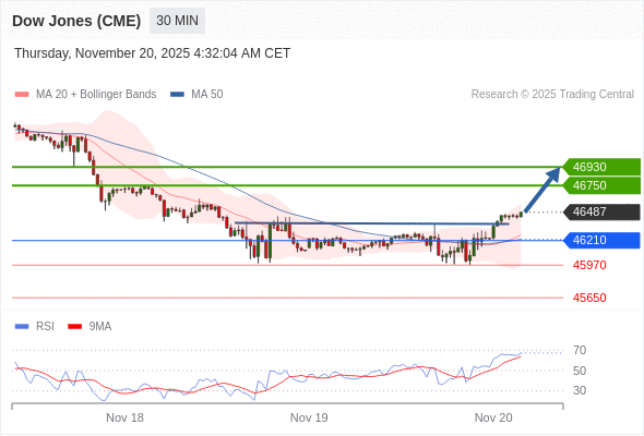 在 46210 之上,看涨,目标价位为 46750 ,然后为 46930 。