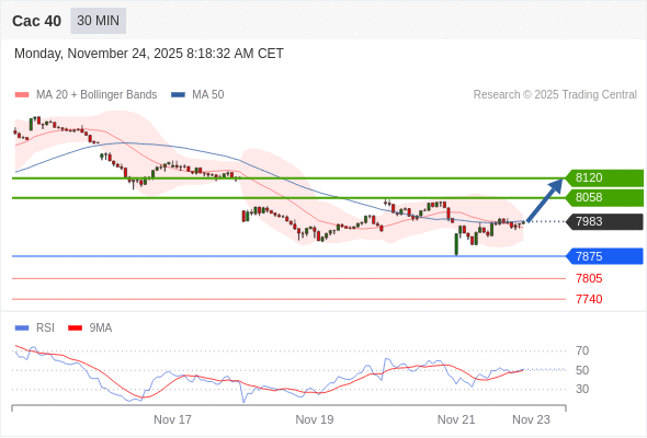 Cac 40 当日内: 超短线(当日内)支撑位在7875附近。