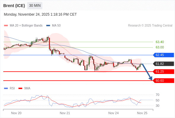 交易策略: 在 62.45 之下,看跌,目标价位为 61.25 ,然后为 60.60 。