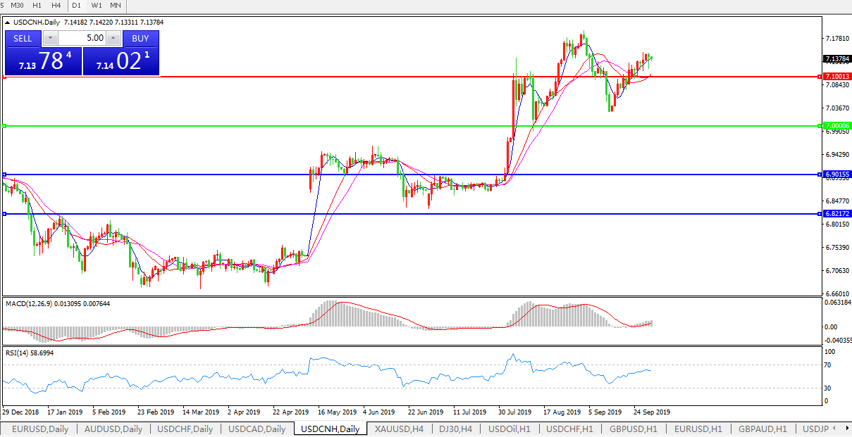 技术面简析:日图短期均线延续攻势,汇价站稳7.10关口维持上攻,MACD再度走升且有放量迹象,RSI存回落迹象,预计短期汇价有回落风险,上方重点关注7.20-7.30区间的压制;中美贸易谈判进展须持续关注。