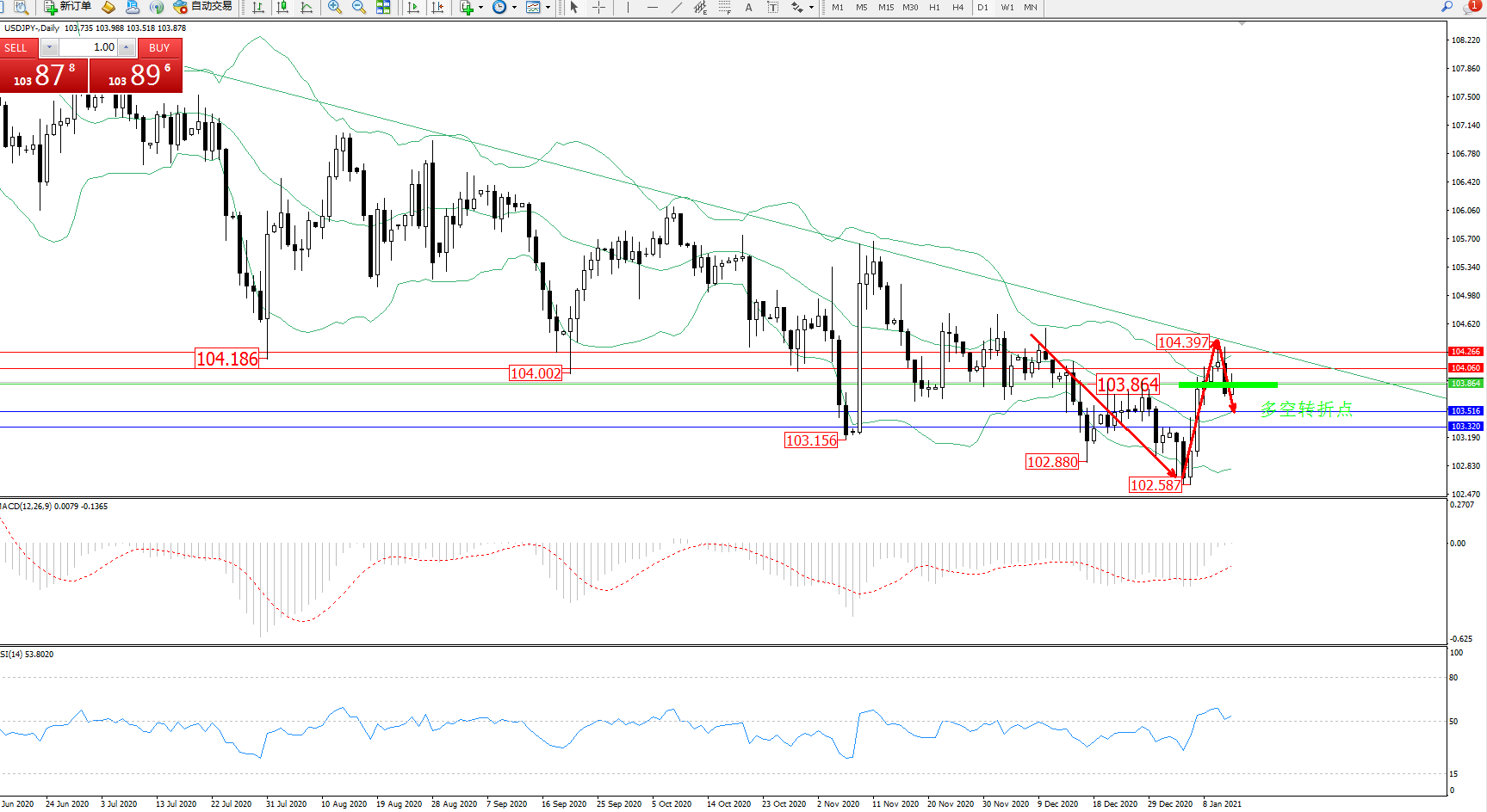 多空转折点:103.864