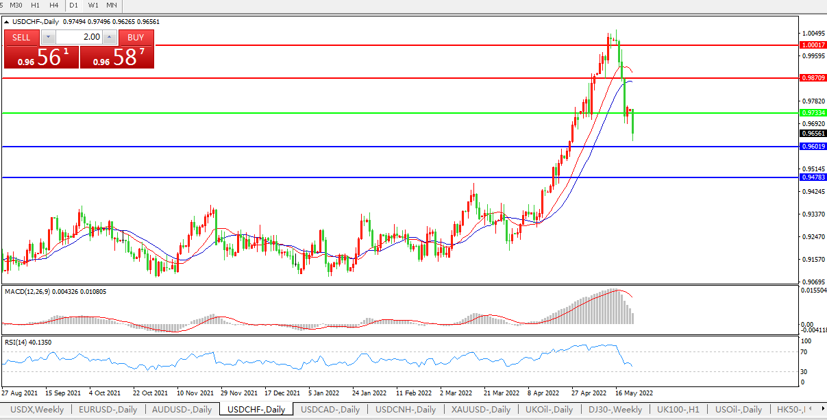 美元兑瑞郎USDCHF 日线图:
