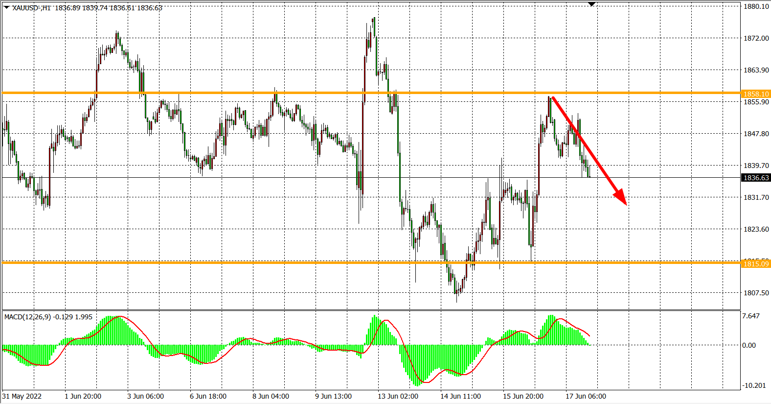 交易策略:在1850.00之下看跌,目标1830.00          1815.00