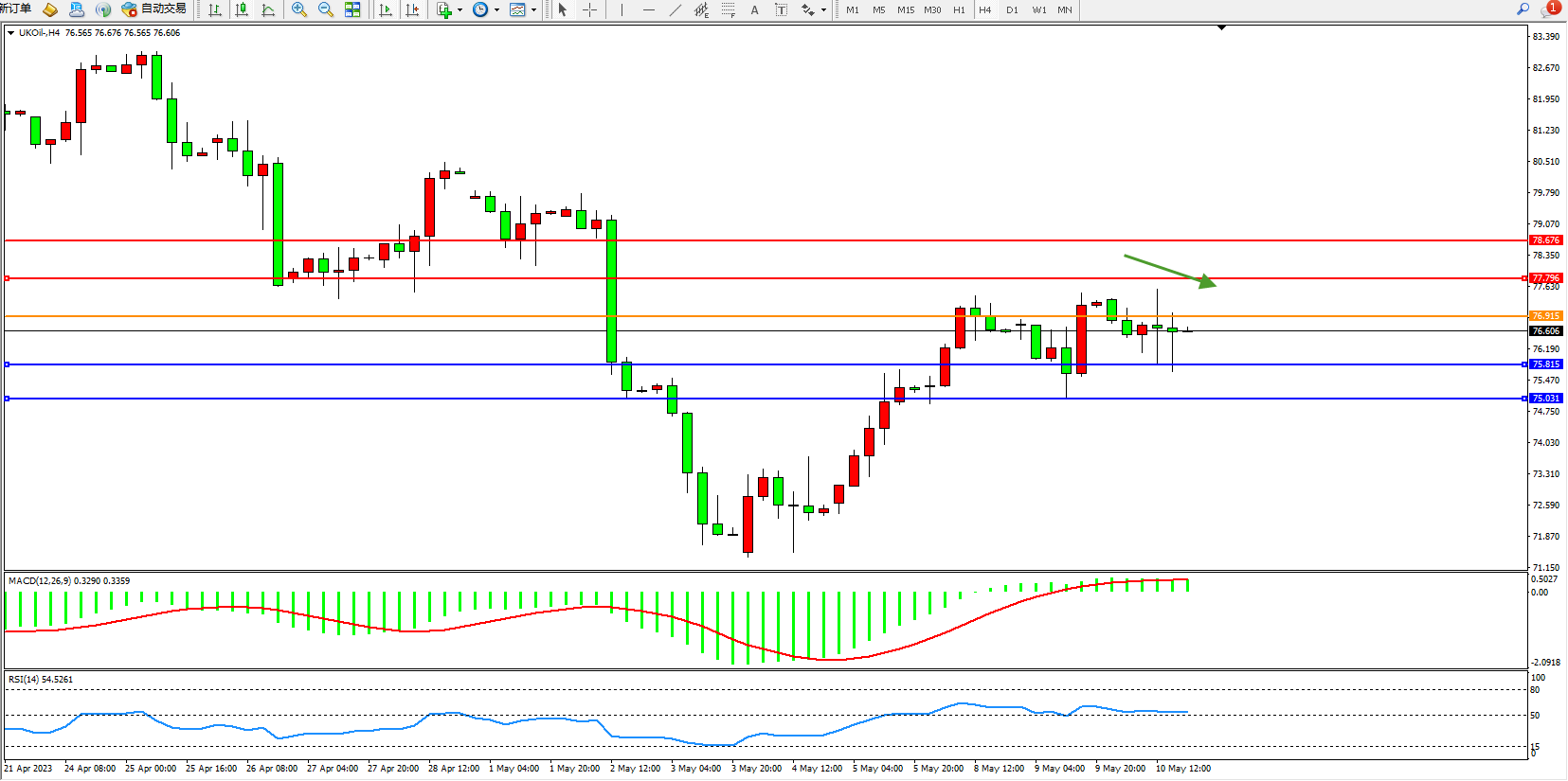 布油维持76.606附近震荡,美国至5月5日当周EIA原油库存 295.1万桶,预期-91.7万桶,前值-128.1万桶。美国至5月5日当周EIA俄克拉荷马州库欣原油库存 39.7万桶,前值54.1万桶。