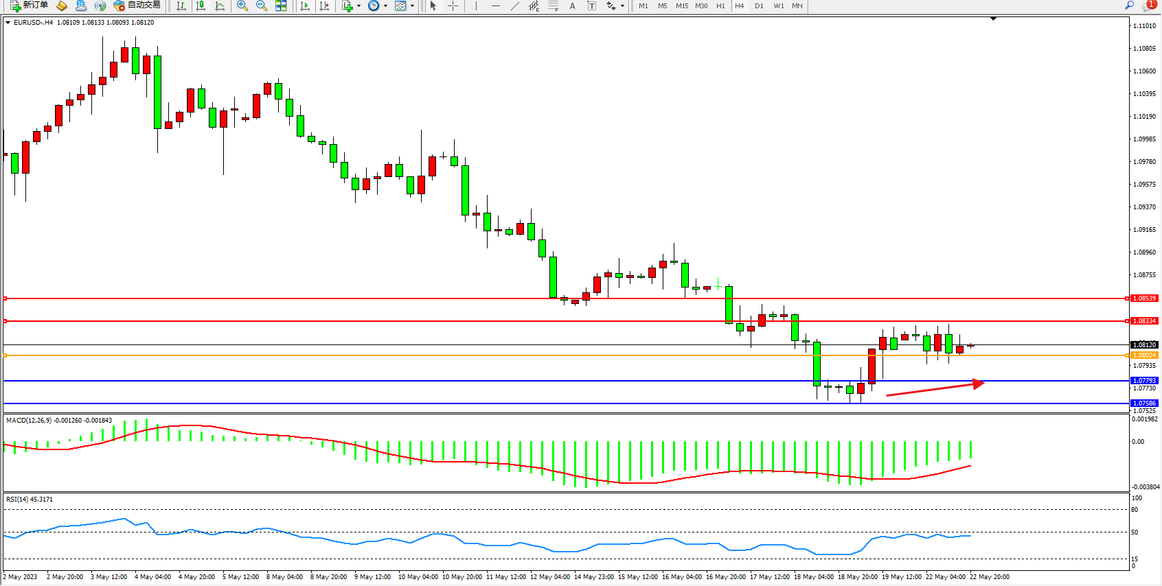 备选策略:1.08024下方看跌,目标1.07793 1.07589