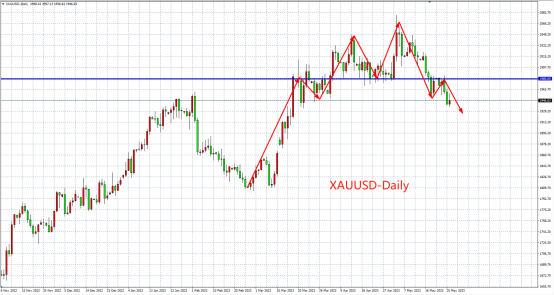 上周(5月22日-5月26日)黄金整体维持下跌,首先多为美联储官员发表鹰派言论,同时美国PCE物价指数以及GDP数据超出预期,此外围绕美国债务上限谈判的消息也对市场走势产生明显影响,债限谈判僵局可能引爆美国债务违约的不确定性,以上因素刺激美指上周飙涨逾百点,现货黄金则大跌超30美元。