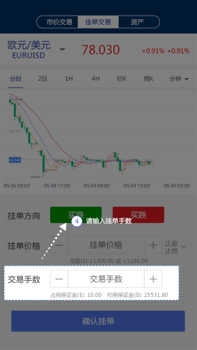 1.进入市价交易界面,输入或选择交易手数(最小可开仓0.01手,最大可开仓10手)