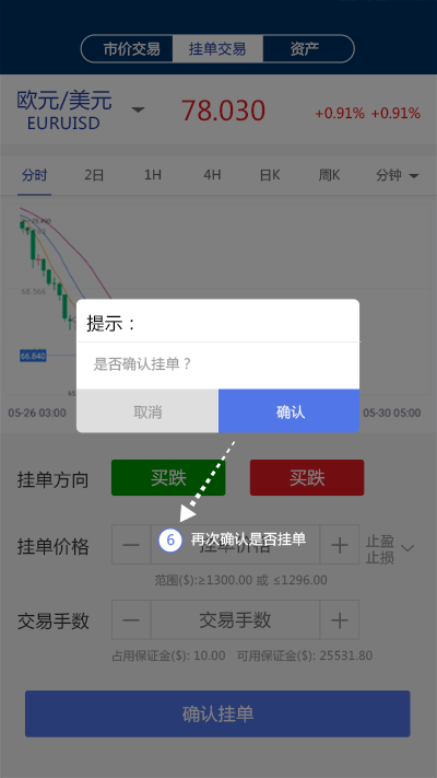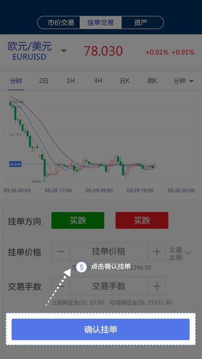 3.设置止盈价,止损价,因现价实时波动,设置时需注意设置的价格符合参考范围